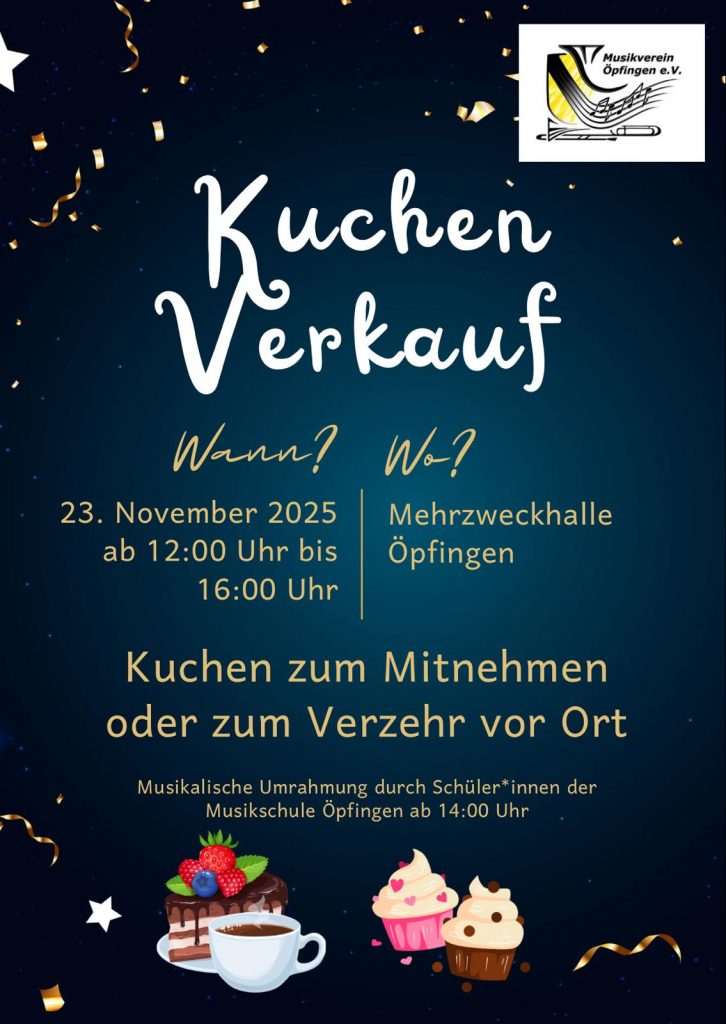 Der Musikverein sorgt für das leibliche Wohl – mit Kaffee und hausgemachtem Kuchen, den Sie gerne auch zum Mitnehmen erwerben können.